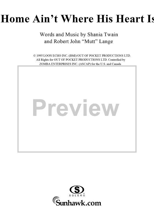 "Home Ain't Where His Heart Is (Anymore)" Sheet Music by Shania Twain