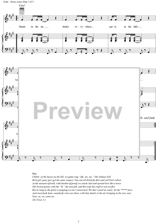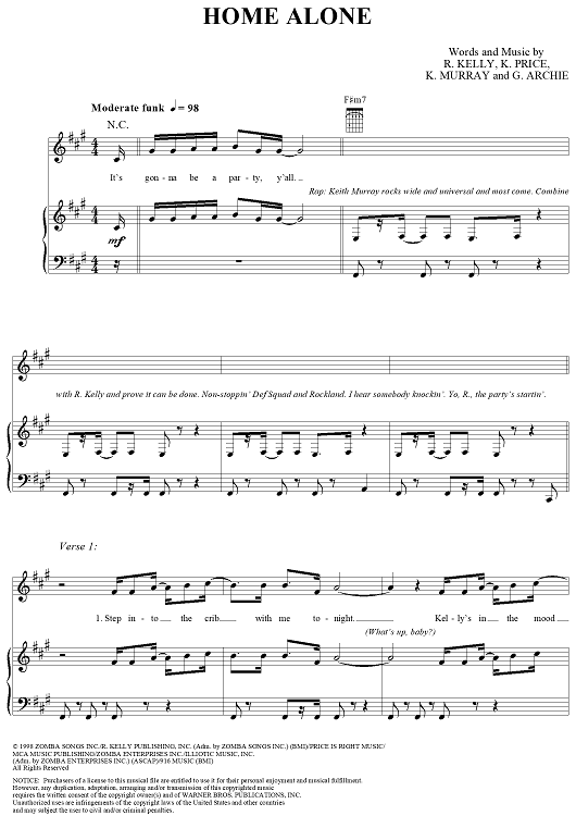 Digital Sheet Music for Home Alone by R. Kelly, Kelly Price, Keith Murray, G. Archie scored for Piano/Vocal/Chords; id:124357