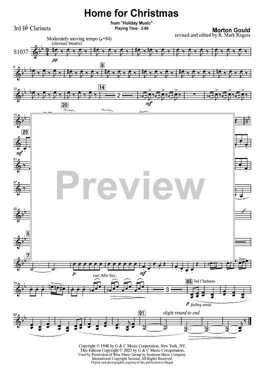 "Home for Christmas - Bb Clarinet 3" Sheet Music by Morton Gould