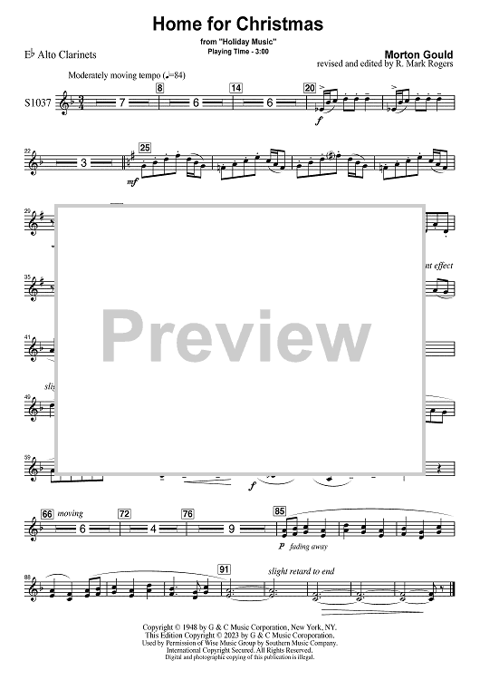 "Home for Christmas - Eb Alto Clarinet" Sheet Music by Morton Gould