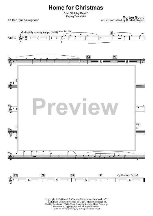 "Home for Christmas - Eb Baritone Sax" Sheet Music by Morton Gould