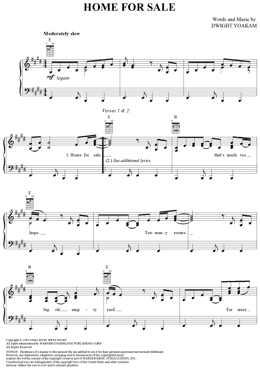 Digital Sheet Music for Home for Sale by Dwight Yoakam scored for Piano/Vocal/Chords; id:241267