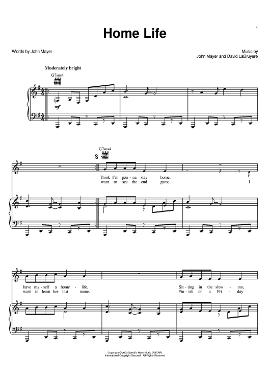 Digital Sheet Music for Home Life by David LaBruyere, John Mayer scored for Piano/Vocal/Chords; id:373516