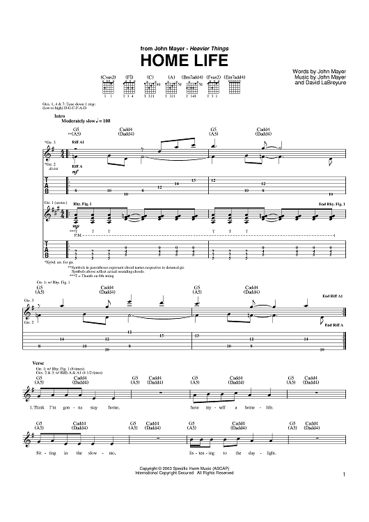 Digital Sheet Music for Home Life by David LaBruyere, John Mayer scored for Guitar Tab; id:374685