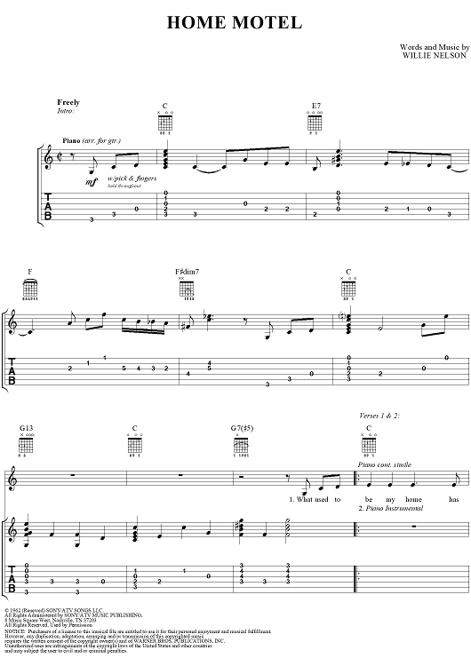 "Home Motel" Sheet Music by Willie Nelson