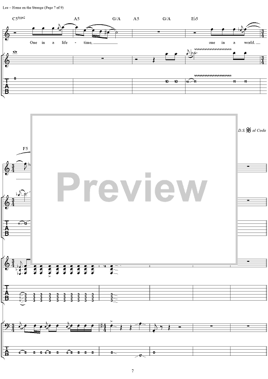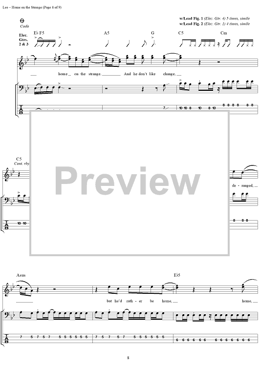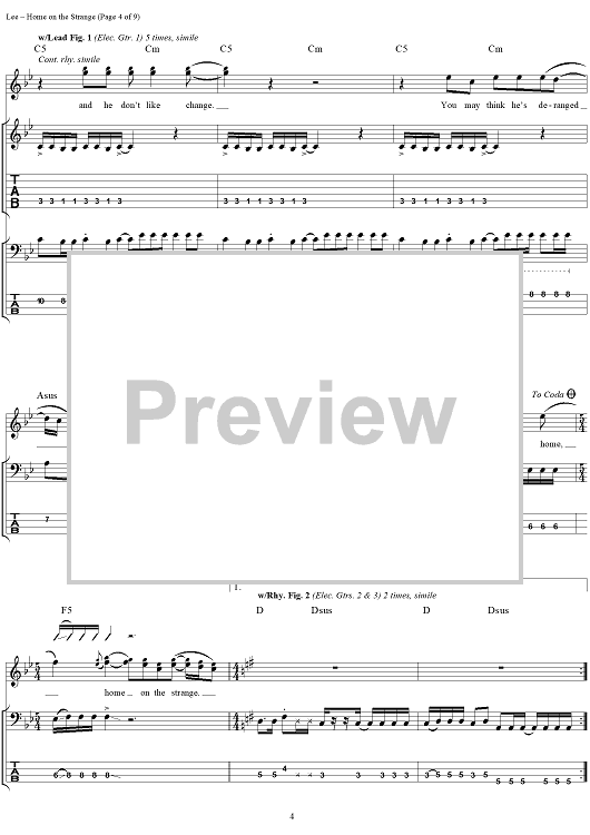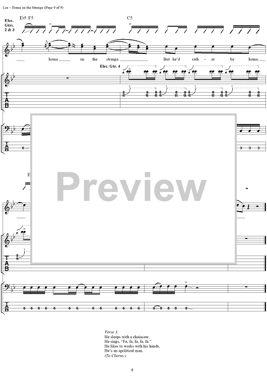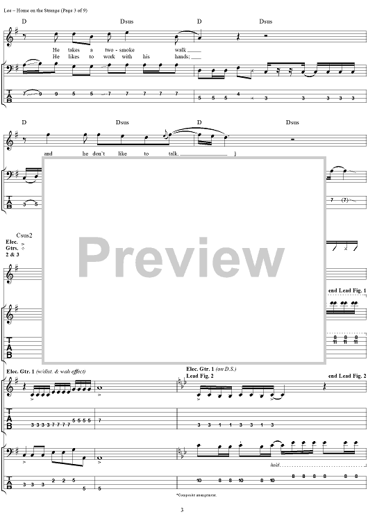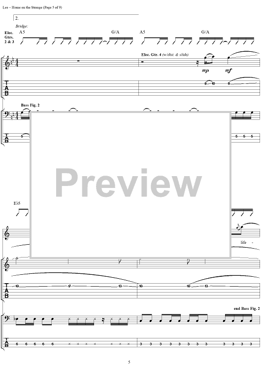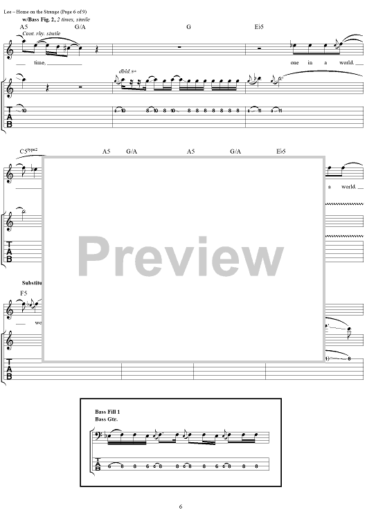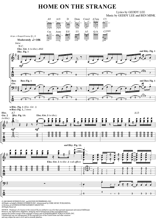 Digital Sheet Music for Home on the Strange by Geddy Lee, Ben Mink scored for Guitar Tab/Bass/Vocal; id:285311