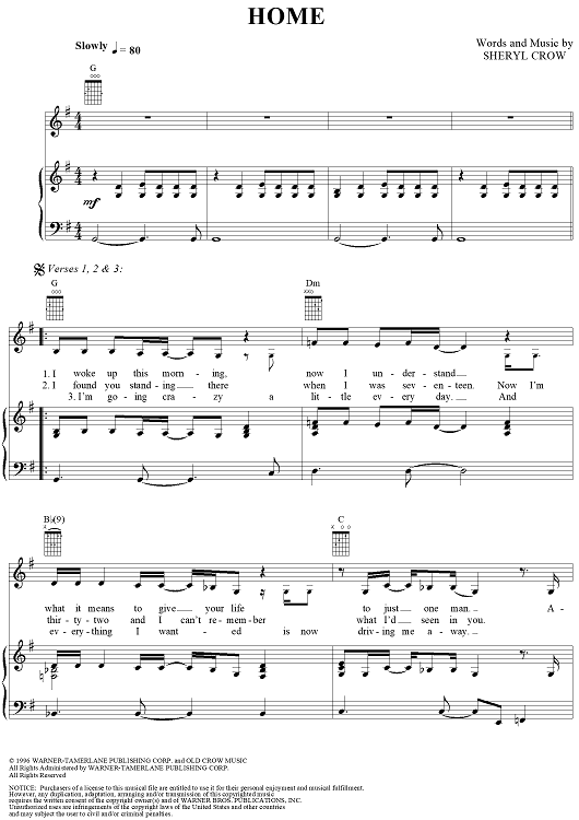 Digital Sheet Music for Home by Sheryl Crow scored for Piano/Vocal/Chords; id:115871