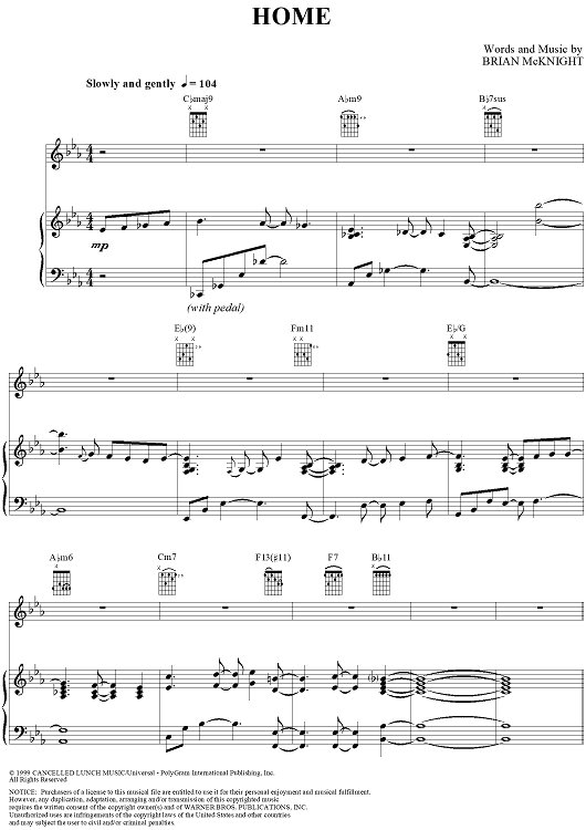 Digital Sheet Music for Home by Brian McKnight scored for Piano/Vocal/Chords; id:198172