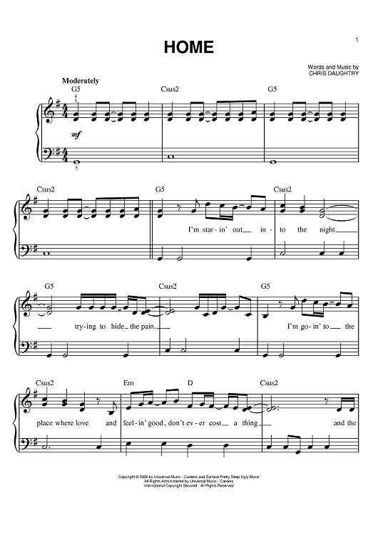Digital Sheet Music for Home by Chris Daughtry, Daughtry scored for Easy Piano; id:398422