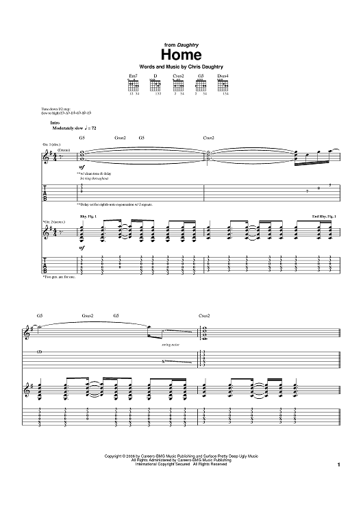 Digital Sheet Music for Home by Chris Daughtry, Daughtry scored for Guitar Tab; id:401055