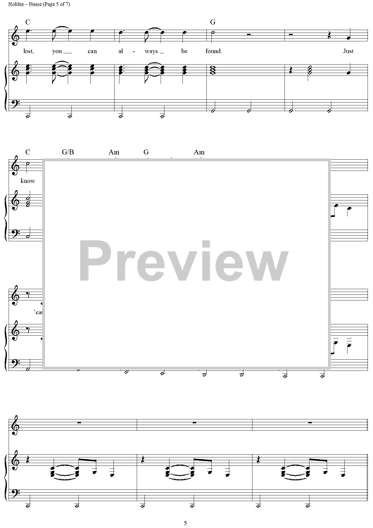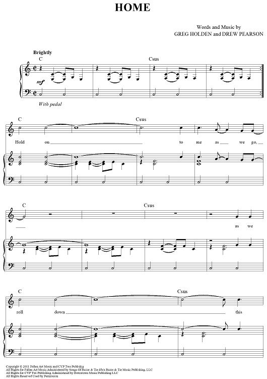 Digital Sheet Music for Home by Greg Holden, Drew Pearson, Phillip Phillips scored for Piano/Vocal/Chords; id:430238