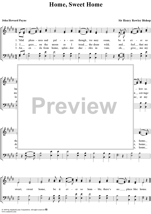 Digital Sheet Music for Home, Sweet Home by Henry Bishop, John Howard Payne scored for SATB or Piano/Vocal; id:266122