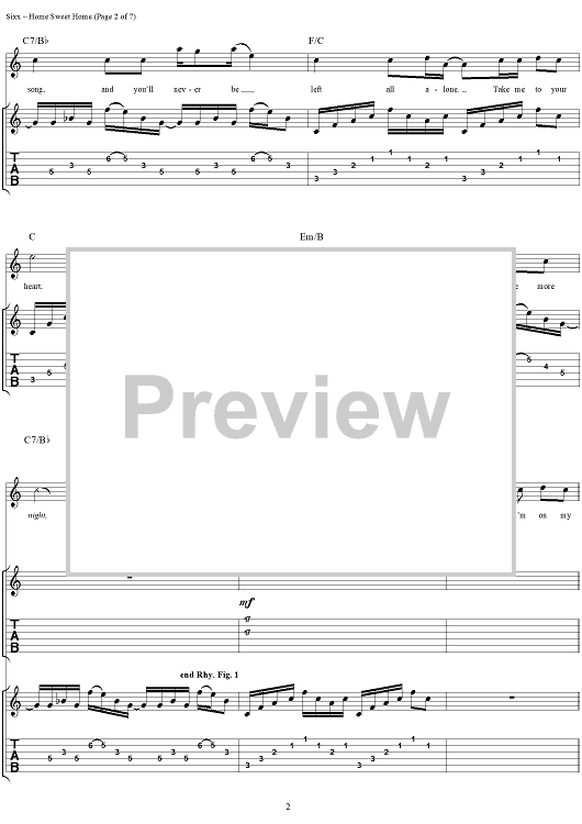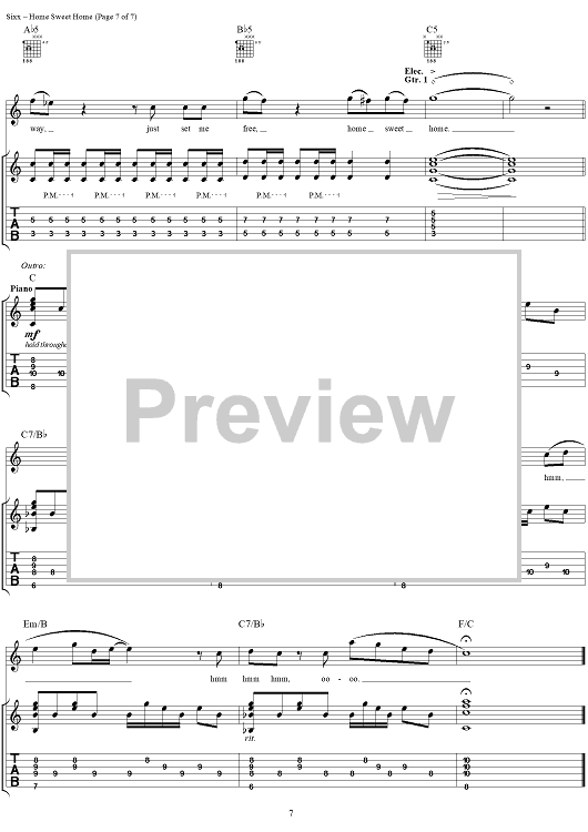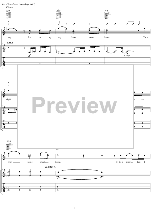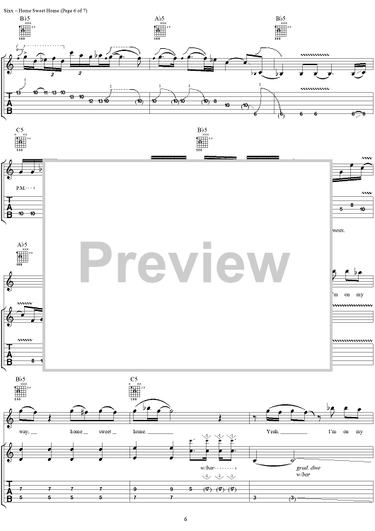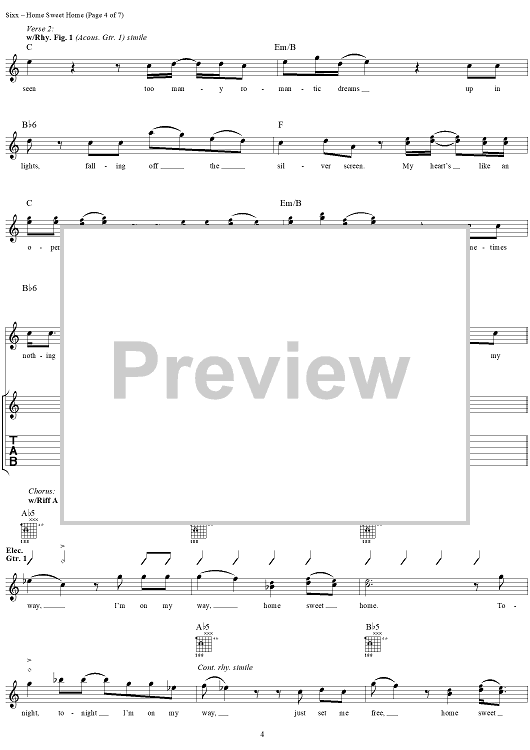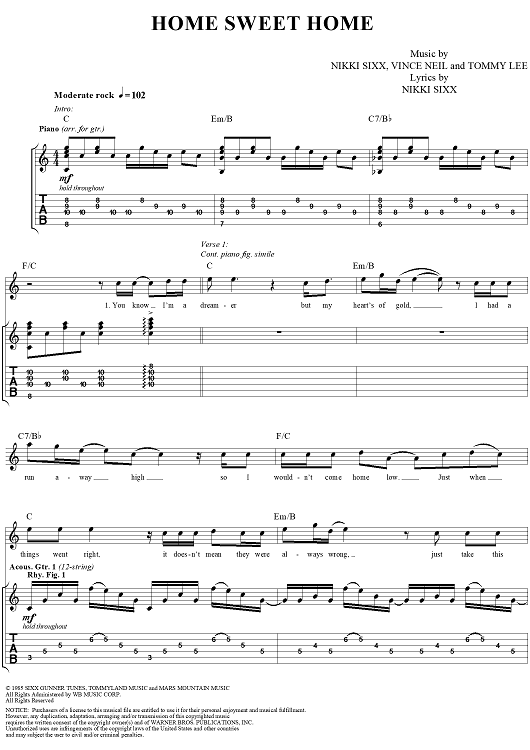 Digital Sheet Music for Home Sweet Home by Mötley Crüe, Nikki Sixx, Tommy Lee, Vince Neil scored for Guitar Tab/Vocal; id:297757
