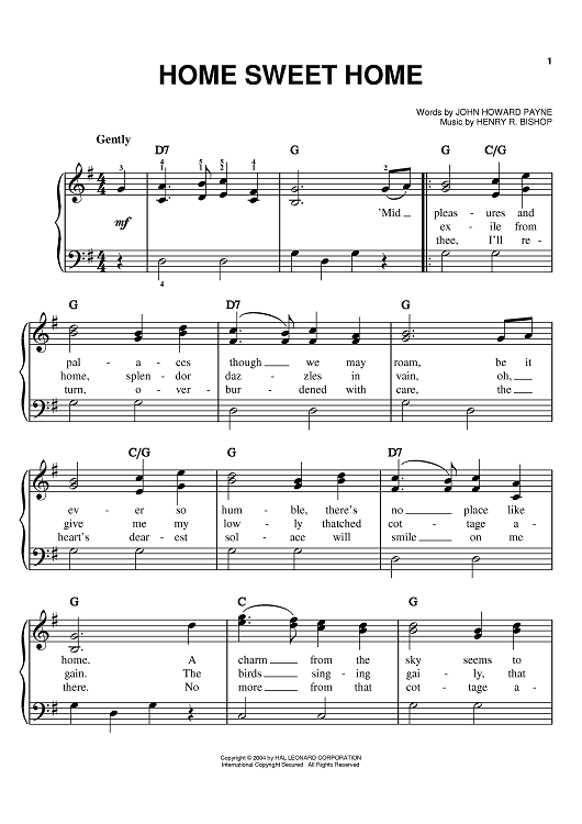 Digital Sheet Music for Home Sweet Home by Henry Bishop, John Howard Payne scored for Easy Piano; id:373844