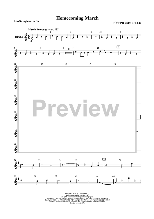 "Homecoming (March) - Alto Sax" Sheet Music by Joseph Compello