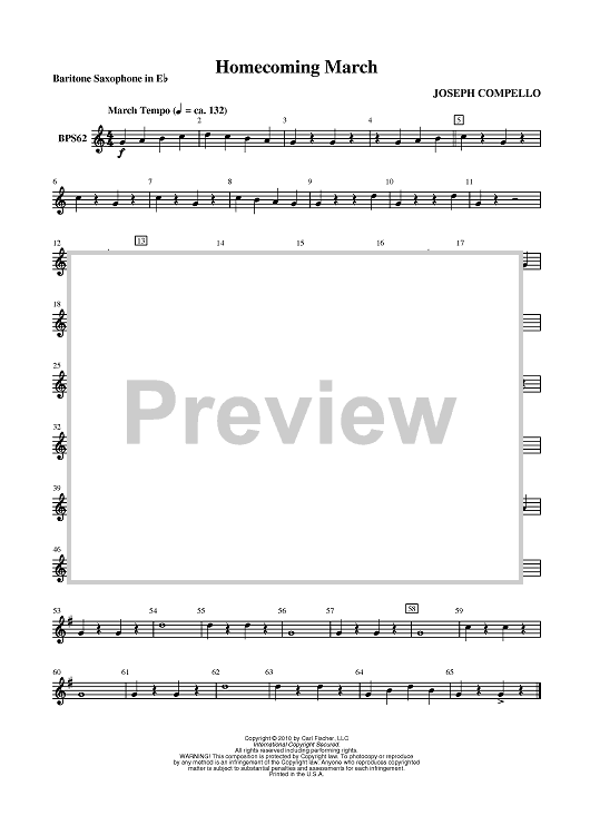 "Homecoming (March) - Baritone Sax" Sheet Music by Joseph Compello