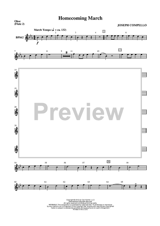 "Homecoming (March) - Oboe (Opt. Flute 2)" Sheet Music by Joseph Compello