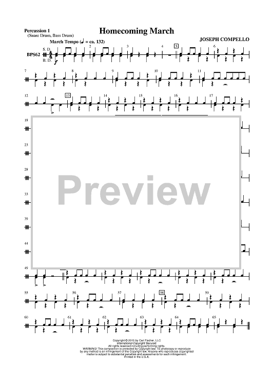 "Homecoming (March) - Percussion 1" Sheet Music by Joseph Compello