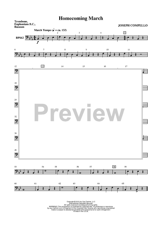 "Homecoming (March) - Trombone/Euphonium BC/Bassoon" Sheet Music by Joseph Compello