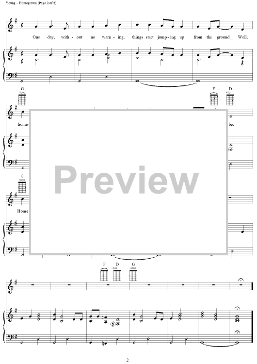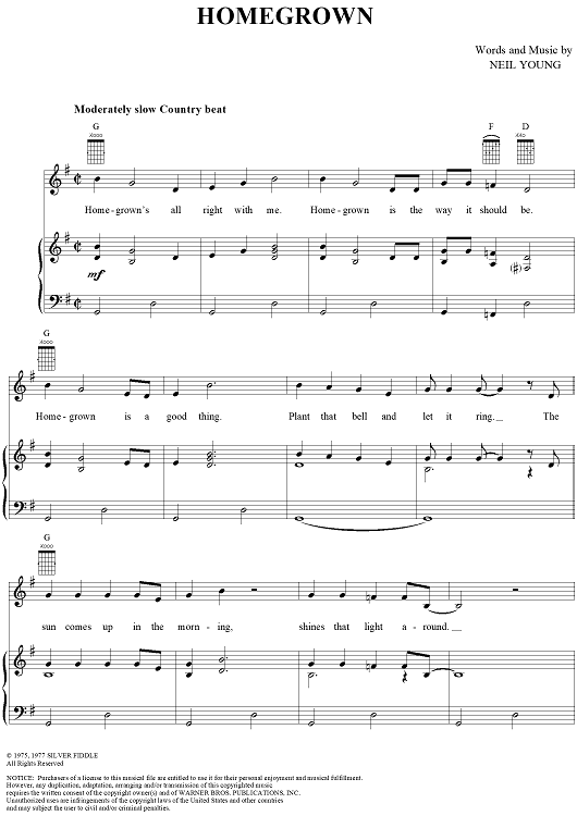 Digital Sheet Music for Homegrown by Neil Young scored for Piano/Vocal/Chords; id:263076