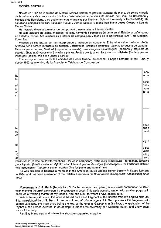 "Homenatge a J. S. Bach - Preface" Sheet Music by Moisès Bertran