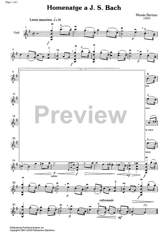 Digital Sheet Music for Homenatge a J. S. Bach - Violin by Moisès Bertran scored for Violin/Piano; id:348655