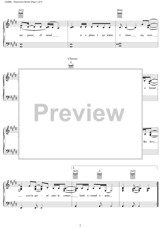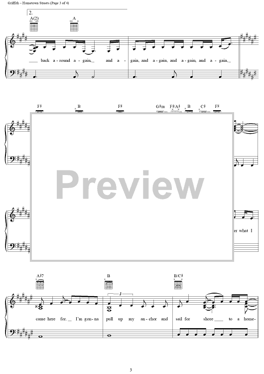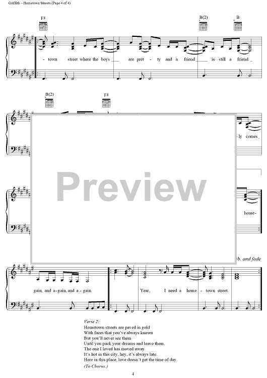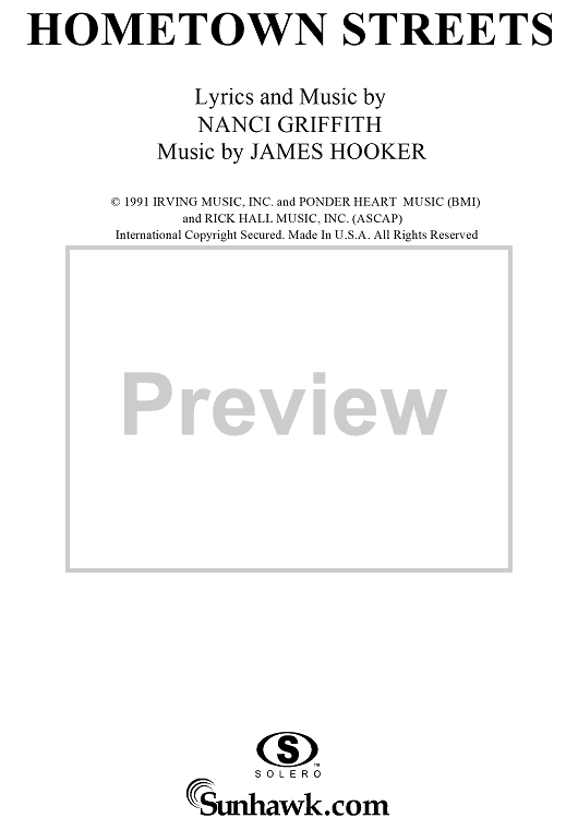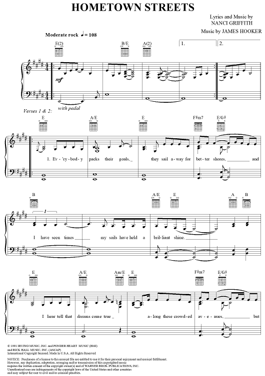 Digital Sheet Music for Hometown Streets by Nanci Griffith, James Hooker scored for Piano/Vocal/Chords; id:267837