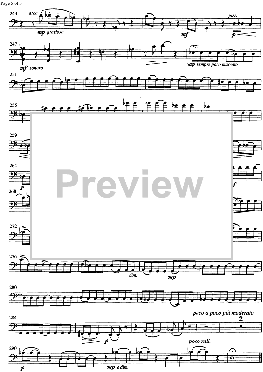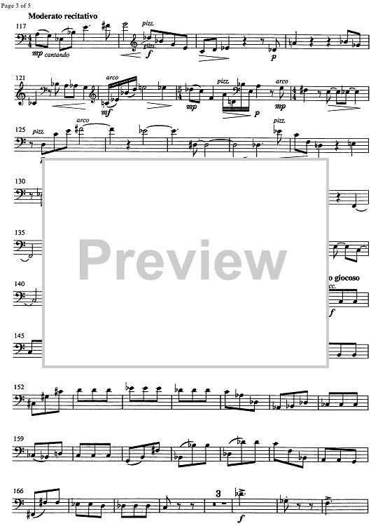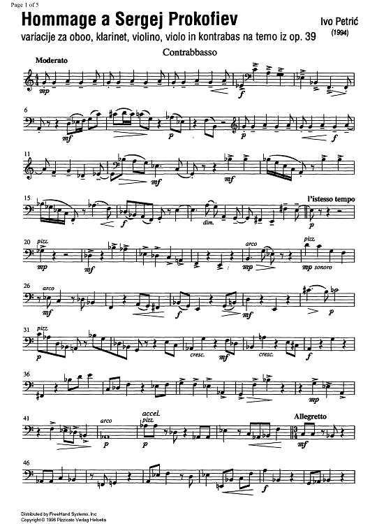 Digital Sheet Music for Hommage a Sergej Prokofiev Op.39 - Double Bass by , Ivo Petric scored for Oboe/Clarinet/Violin/Viola/Double Bass; id:335331