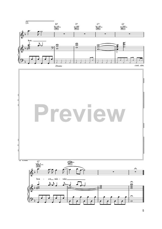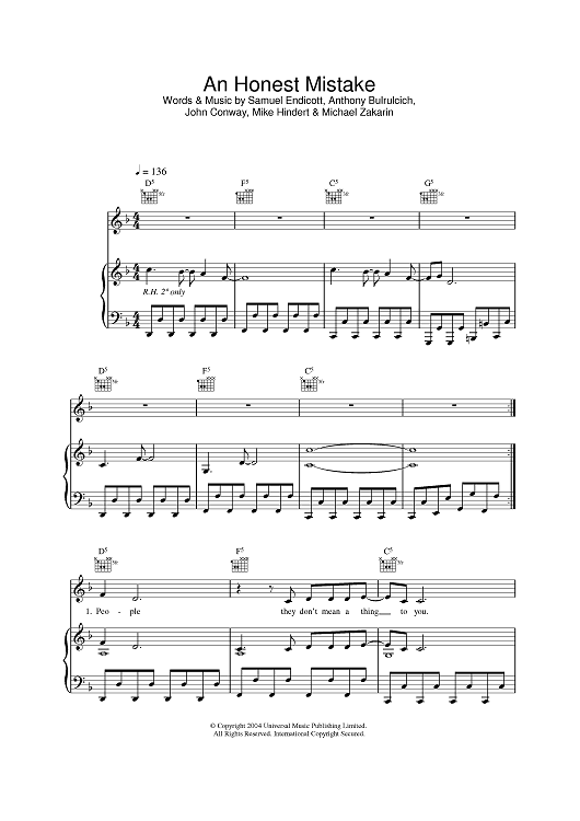 Digital Sheet Music for Honest Mistake by The Bravery, Samuel Endicott scored for Piano/Vocal/Chords; id:383253