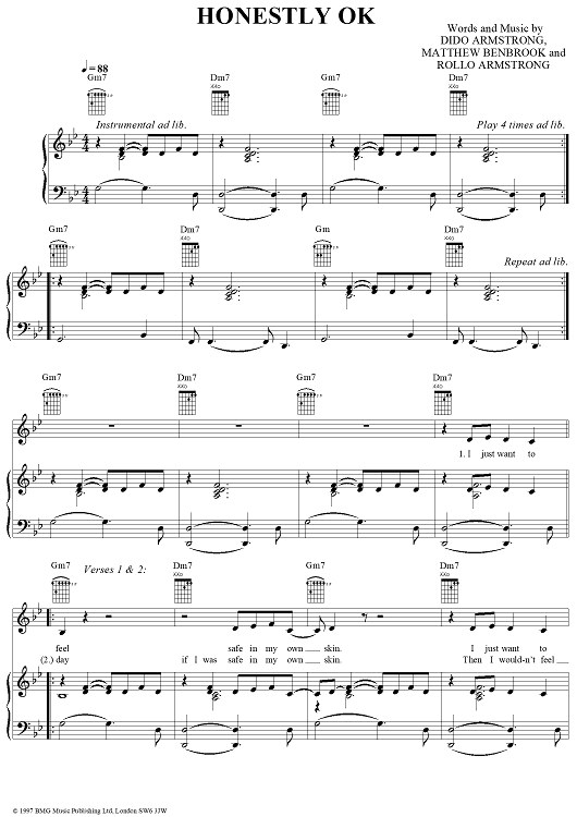 Digital Sheet Music for Honestly Ok by Dido Armstrong, Dido, Rollo Armstrong, Matthew Benbrook scored for Piano/Vocal/Chords; id:285328