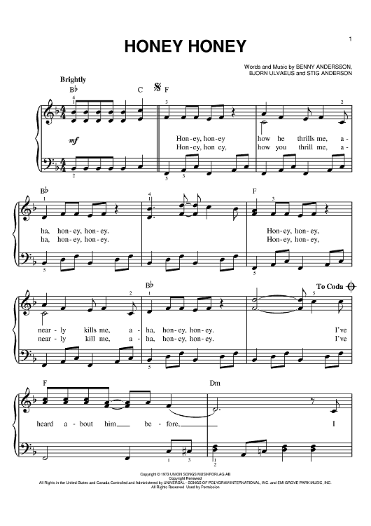 Digital Sheet Music for Honey Honey by ABBA, Benny Andersson, Bjorn Ulvaeus, Stig Anderson scored for Easy Piano; id:388871