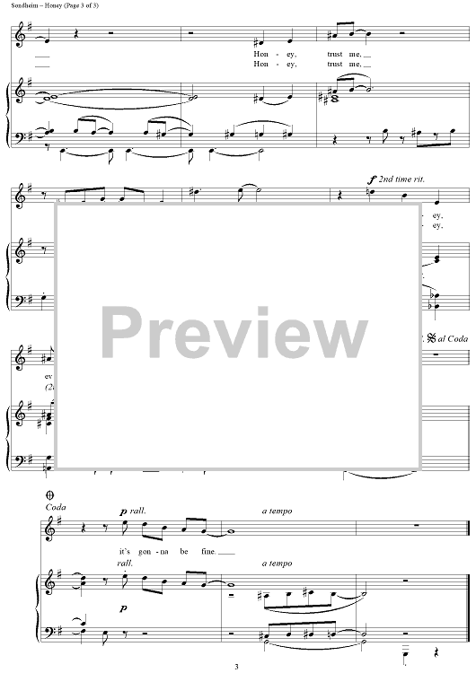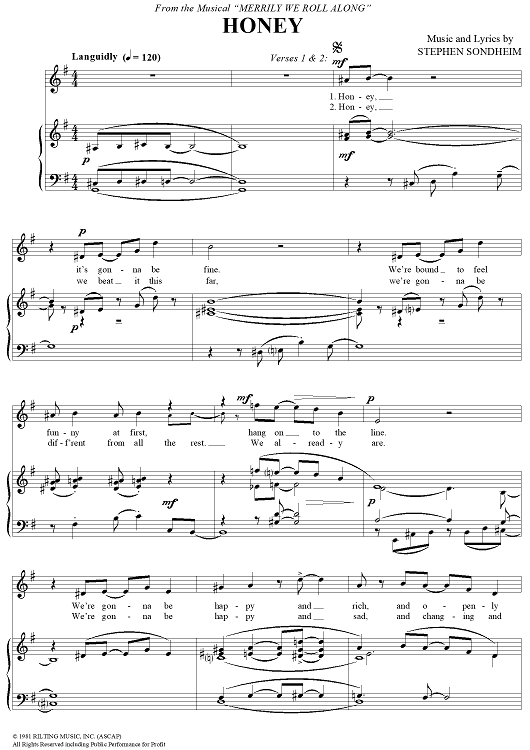 Digital Sheet Music for Honey by Stephen Sondheim scored for Piano/Vocal; id:233249