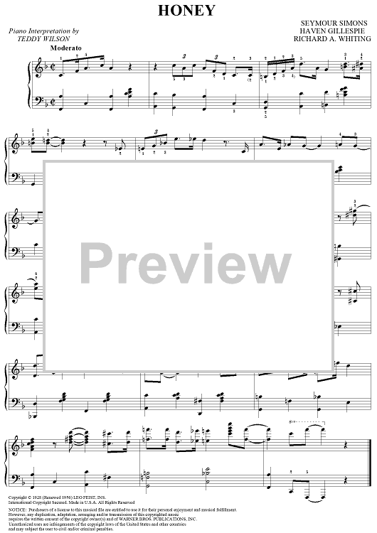 Digital Sheet Music for Honey by Haven Gillespie, Teddy Wilson, Seymour Simons, Richard A. Whiting scored for Piano Solo; id:315924