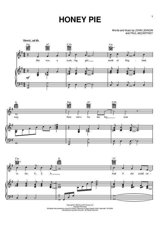 Digital Sheet Music for Honey Pie by Paul McCartney, The Beatles, John Lennon scored for Piano/Vocal/Chords; id:394366