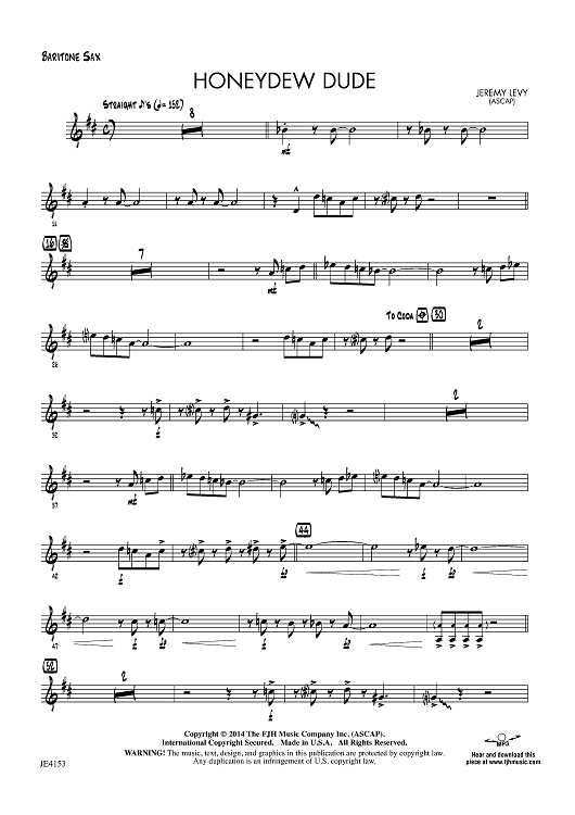 "Honeydew Dude - Baritone Sax" Sheet Music by Jeremy Levy