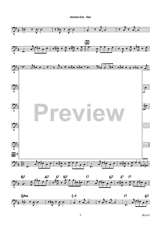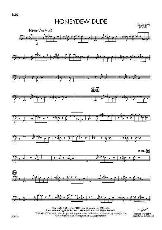 Digital Sheet Music for Honeydew Dude - Bass by Jeremy Levy scored for Jazz Ensemble; id:446612