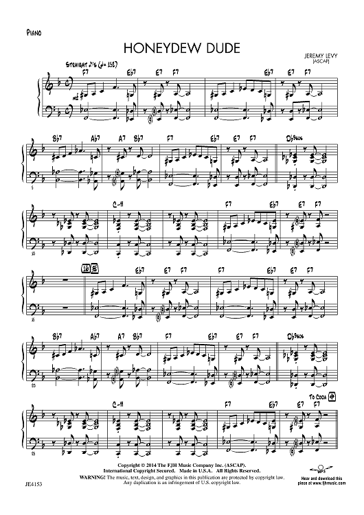 "Honeydew Dude - Piano" Sheet Music by Jeremy Levy