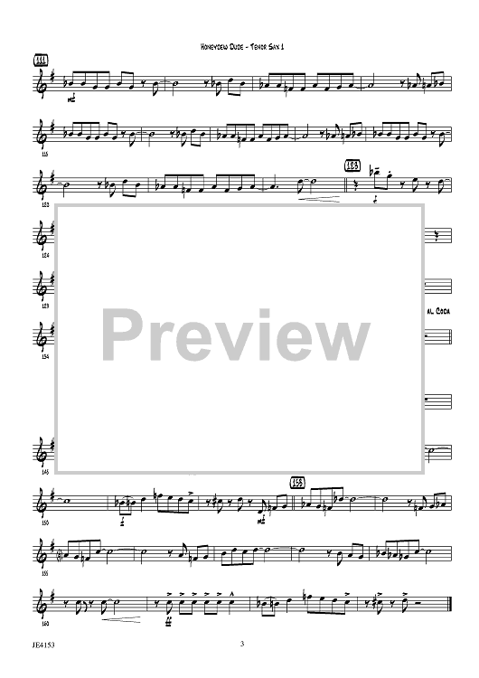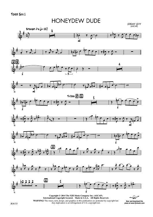 Digital Sheet Music for Honeydew Dude - Tenor Sax 1 by Jeremy Levy scored for Jazz Ensemble; id:446598