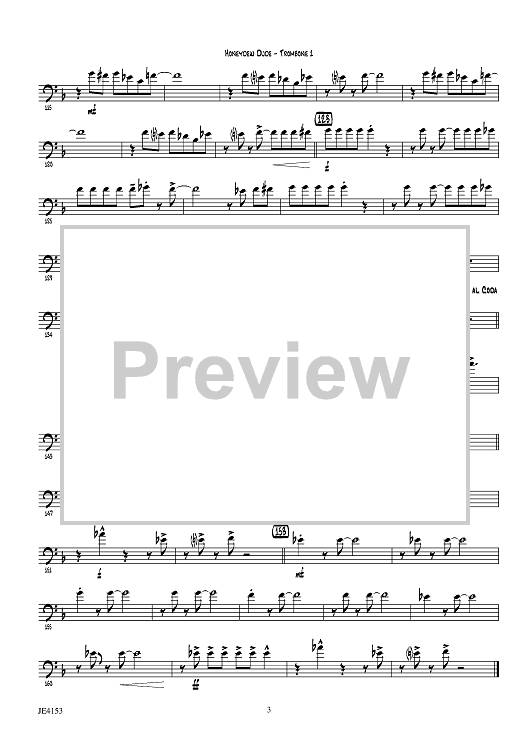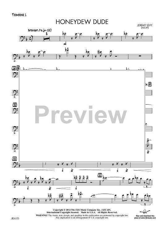 Digital Sheet Music for Honeydew Dude - Trombone 1 by Jeremy Levy scored for Jazz Ensemble; id:446605