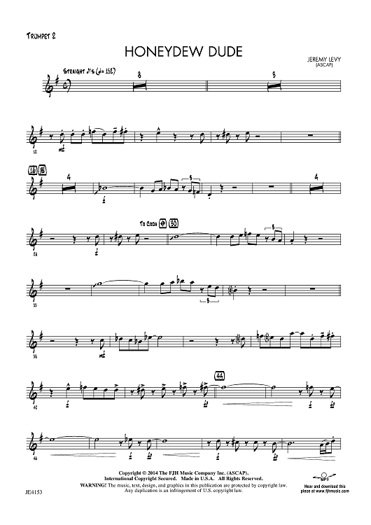 Digital Sheet Music for Honeydew Dude - Trumpet 2 by Jeremy Levy scored for Jazz Ensemble; id:446602
