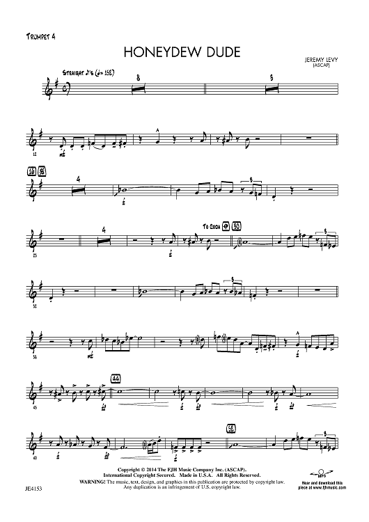 Digital Sheet Music for Honeydew Dude - Trumpet 4 by Jeremy Levy scored for Jazz Ensemble; id:446604