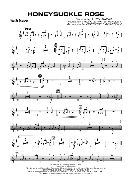 "Honeysuckle Rose - B-flat Trumpet 3" Sheet Music by Thomas Waller