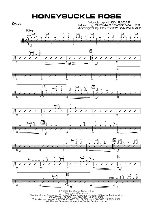 "Honeysuckle Rose - Drums" Sheet Music by Thomas Waller