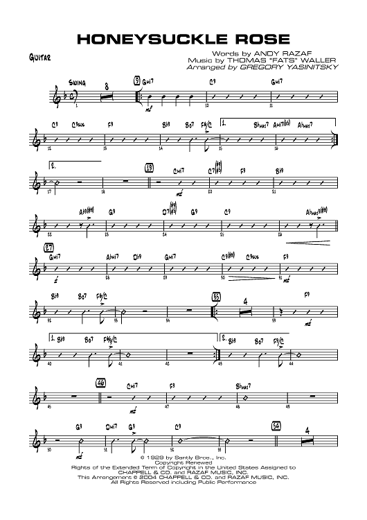 Digital Sheet Music for Honeysuckle Rose - Guitar by Greg Yasinitsky, Andy Razaf, Thomas Waller scored for Jazz Ensemble; id:358931