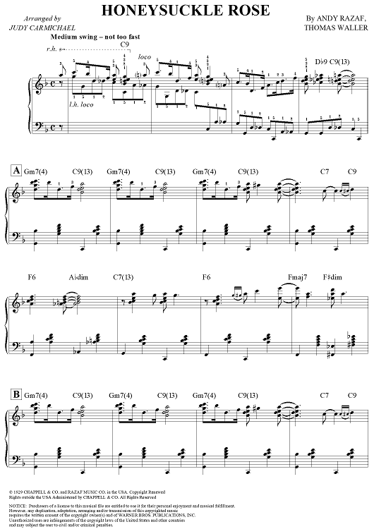Digital Sheet Music for Honeysuckle Rose by Judy Carmichael, Andy Razaf, Thomas Waller scored for Piano Solo; id:284898