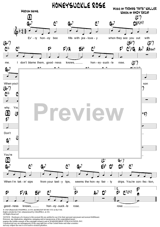 Digital Sheet Music for Honeysuckle Rose by Fats Waller, Tommy Dorsey, Andy Razaf, Thomas Waller scored for Lead Sheet; id:312218