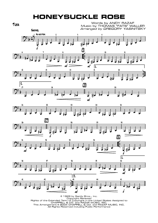 Digital Sheet Music for Honeysuckle Rose - Tuba by Greg Yasinitsky, Andy Razaf, Thomas Waller scored for Jazz Ensemble; id:358930