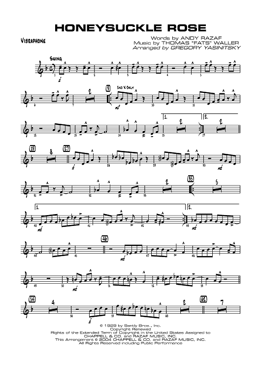 Digital Sheet Music for Honeysuckle Rose - Vibraphone by Greg Yasinitsky, Andy Razaf, Thomas Waller scored for Jazz Ensemble; id:358935