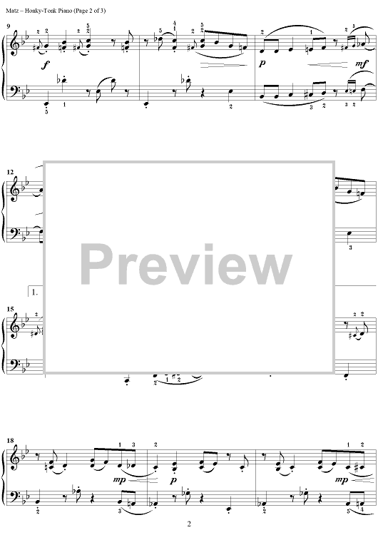 Digital Sheet Music for Honky-Tonk Piano by Carol Matz scored for Piano; id:457582
