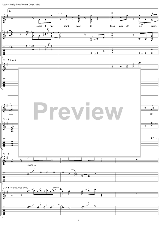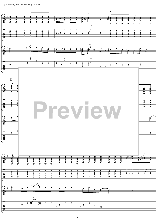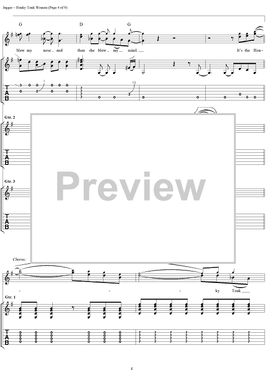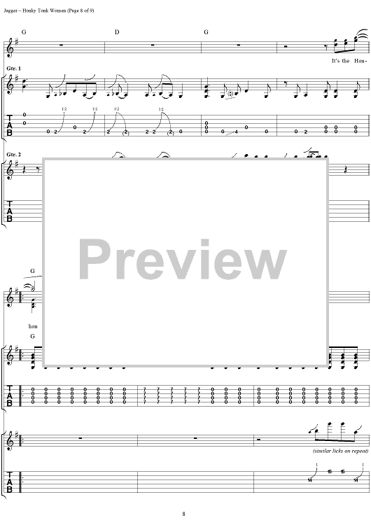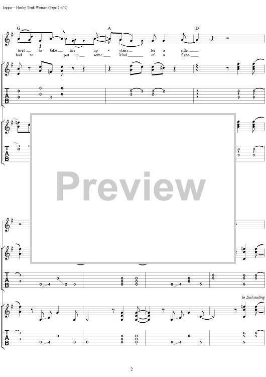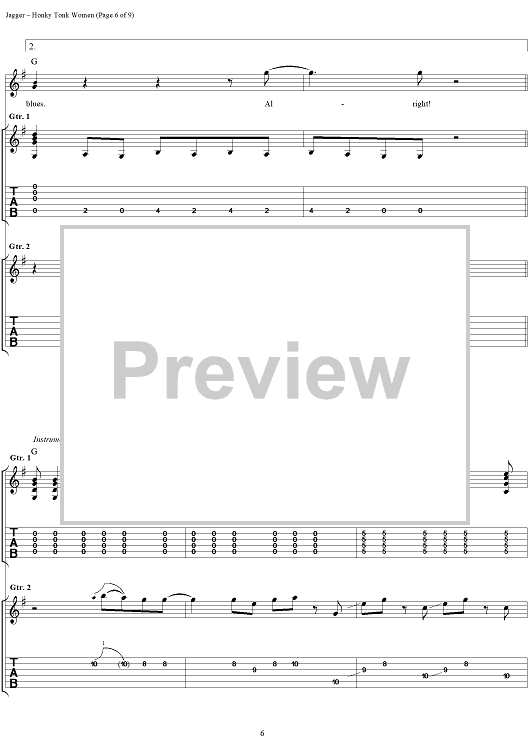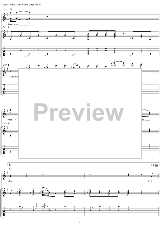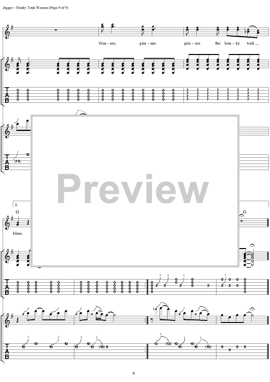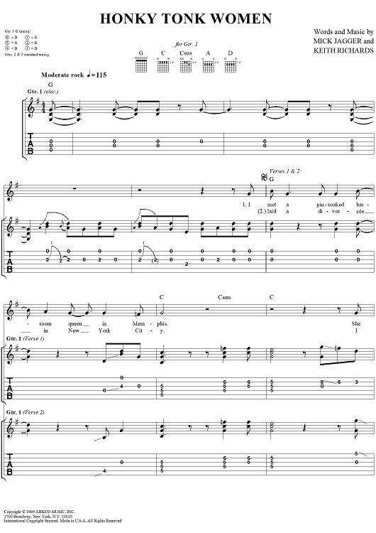 Digital Sheet Music for Honky Tonk Women by Keith Richards, The Rolling Stones, Mick Jagger scored for Guitar Tab/Vocal; id:316402